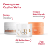 Revitalize fios frgeis com o Kit Wella Cronograma Capilar. Nutre, repara e protege seu cabelo para um brilho e resistncia intensos. Veja!Kit Wella Professionals Cronograma Capilar Fios Perfeitos (3 Produtos)Kit de cronograma capilar para cabelos quebradios. Kit Wella Cronograma Capilar Fios Perfeitos repara a fibra capilar, protege de quebras, nutre e hidrata profundamente. Kit Wella Cronograma Capilar Fios Perfeitos revitaliza o cabelo fragilizado, age na reposio de nutrientes essenciais e possui agentes condicionantes. Alm disso, d brilho e toque sedoso. Contm Wella Professionals Oil Reflections Luminous Reboost – Mscara 150ml restaura a estrutura capilar, garante brilho e maciez intensa.Wella Professionals Invigo Nutri-Enrich – Mscara 150ml hidrata e nutre profundamente para restaurar a sade dos fios e proporcionar toque sedoso. Wella Professionals Fusion – Mscara 150ml repara a fibra capilar e protege de possveis quebras e agresses enquanto ajuda a revitalizar o fio fragilizado por agresses antigas. Aoleo de Semente de Camlia cicatrizao e selagem do fio.Extrato de Ch Branco antioxidante natural.Fragrncia no topo Rom, Pssego e Flor de Baunilha; no corpo Penia, Coco e Jasmim; no fundo Almscar, Baunilha e Cedro.Goji Berry uma fruta com alta concentrao de vitaminas antioxidantes, minerais e peptdeos que melhoram a sade do cabelo.cido Oleico e Pantenol proporcionam hidratao e nutrio de alta performance.Vitamina E protege o cabelo de danos futuros.Fusion Silksteel fuso de aminocidos da seda e lipdios micronizados que penetram no interior do crtex para recuperar a condio ideal do fio e deixar o cabelo at 95% mais resistente.Como UsarKit Wella Professionals Cronograma Capilar Fios Perfeitos (3 Produtos)Conselho de AplicaoDepois de usar o shampoo, remova o excesso de gua com uma toalha. Distribua a mscara sobre o comprimento e pontas e deixe agir por 5 minutos. Enxgue completamente.Dica use os tratamentos conforme a necessidade do seu cabelo e de acordo com o cronograma seguido.ResultadoCabelo mais resistente, nutrido e luminoso.